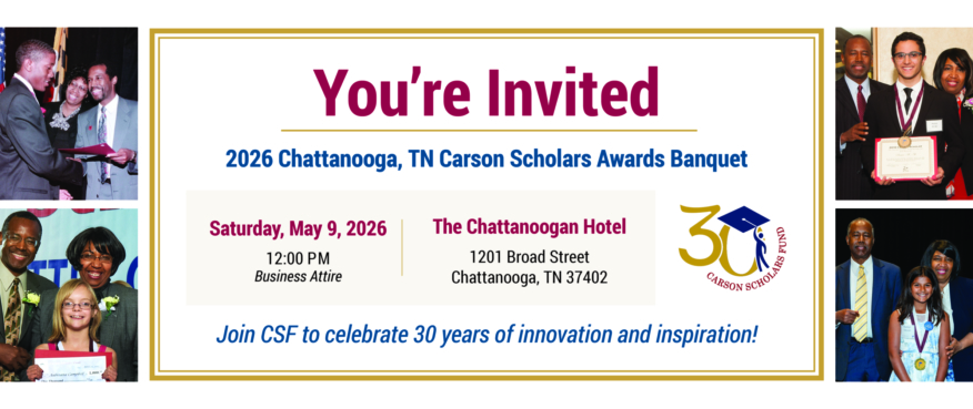 Reserve your Scholar Ticket! All Carson Scholars are invited to attend the awards banquet for free. You must add the $0 scholar ticket to your cart and complete checkout process to receive this complimentary ticket.