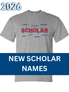 Pre-order merchandise! Check out our exclusive 30th year merchandise and 2026 commemorative scholar t-shirt. Orders must be placed before May 13, 2026. Select local pickup to pick up your merchandise at the banquet, or delivery if you would like it mailed directly to you.