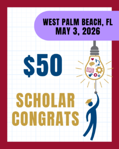 An opportunity for scholars’ families, friends, educators and donors to purchase space in the awards program book, congratulating their scholar(s) on a job well done! (3-line maximum)